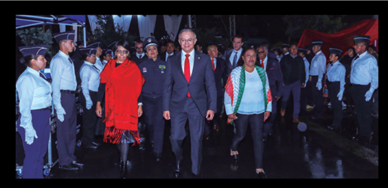 Por esta razón, el Presidente Municipal Raymundo Martínez acompañó a la Gobernadora Delfina Gómez en el palco de gobierno estatal durante esta actividad, desde el que observaron a las fuerzas policiacas federales, estatales y municipales; además, previo a este acto, el Alcalde participó en la Guardia Solemne de Honor Conmemorativa en la Escuela Secundaria Oficial No. 1 «Miguel Hidalgo y Costilla».