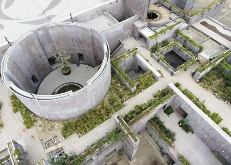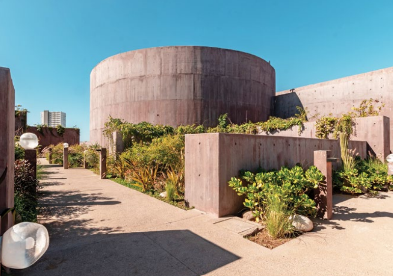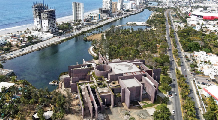 Esta infraestructura, diseñada por la arquitecta mexicana Tatiana Bilbao, se asemeja a un edificio en “ruinas” que emergió del mar.
