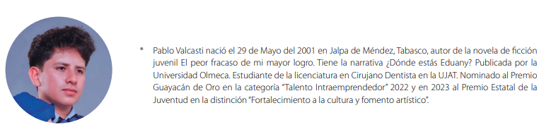 Por ello se dice que el mexicano duerme sobre un tesoro. Ojalá existieran más políticos o empresarios que fijen sus ojos en la necesidad de las nuevas voces. Agradecimiento al diputado Mauricio Cantú, quien me abrió las puertas en Monterrey NL para presentar mi novela El peor fracaso de mi mayor logro en 2022.